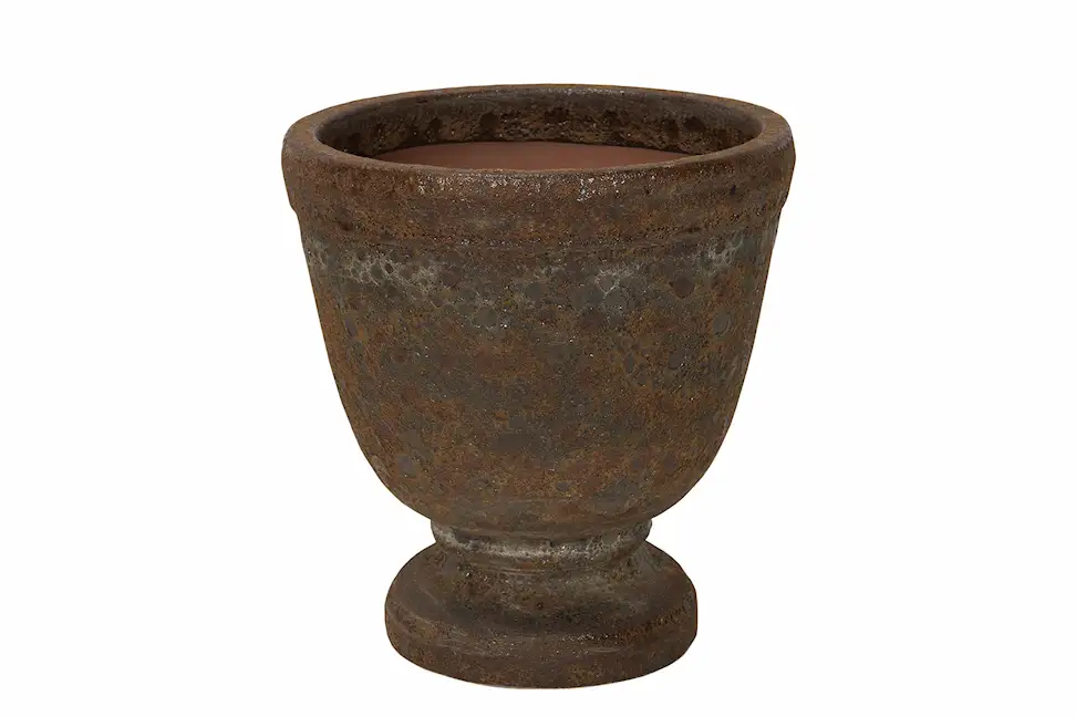 Fill your patio with plants and greenery in our Miranda pot. The pot is frost-resistant and has a hole in the bottom for easy drainage. Made of earthenware.