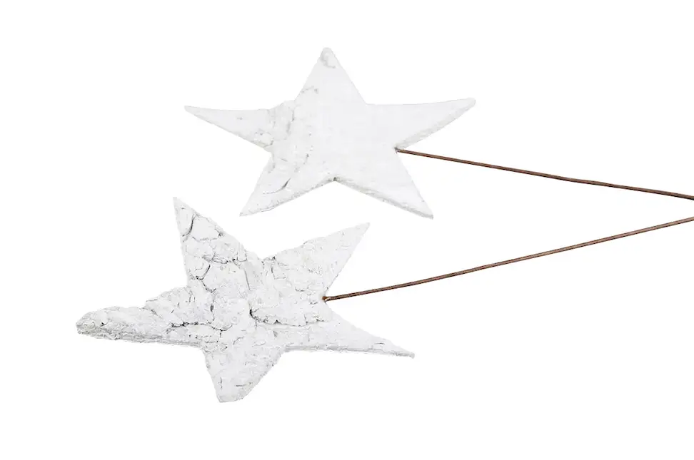 Nämä kepissä olevat koivun tuohitähdet sopivat hyvin seppeleeseen tai kukka-asetelmaan.