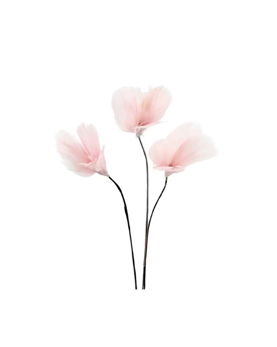 Kukkien muotoiset, langalla koristellut höyhenet. Täydelliset oksien tai kukka-asetelmien koristeluun. Saatavilla eri väreissä.